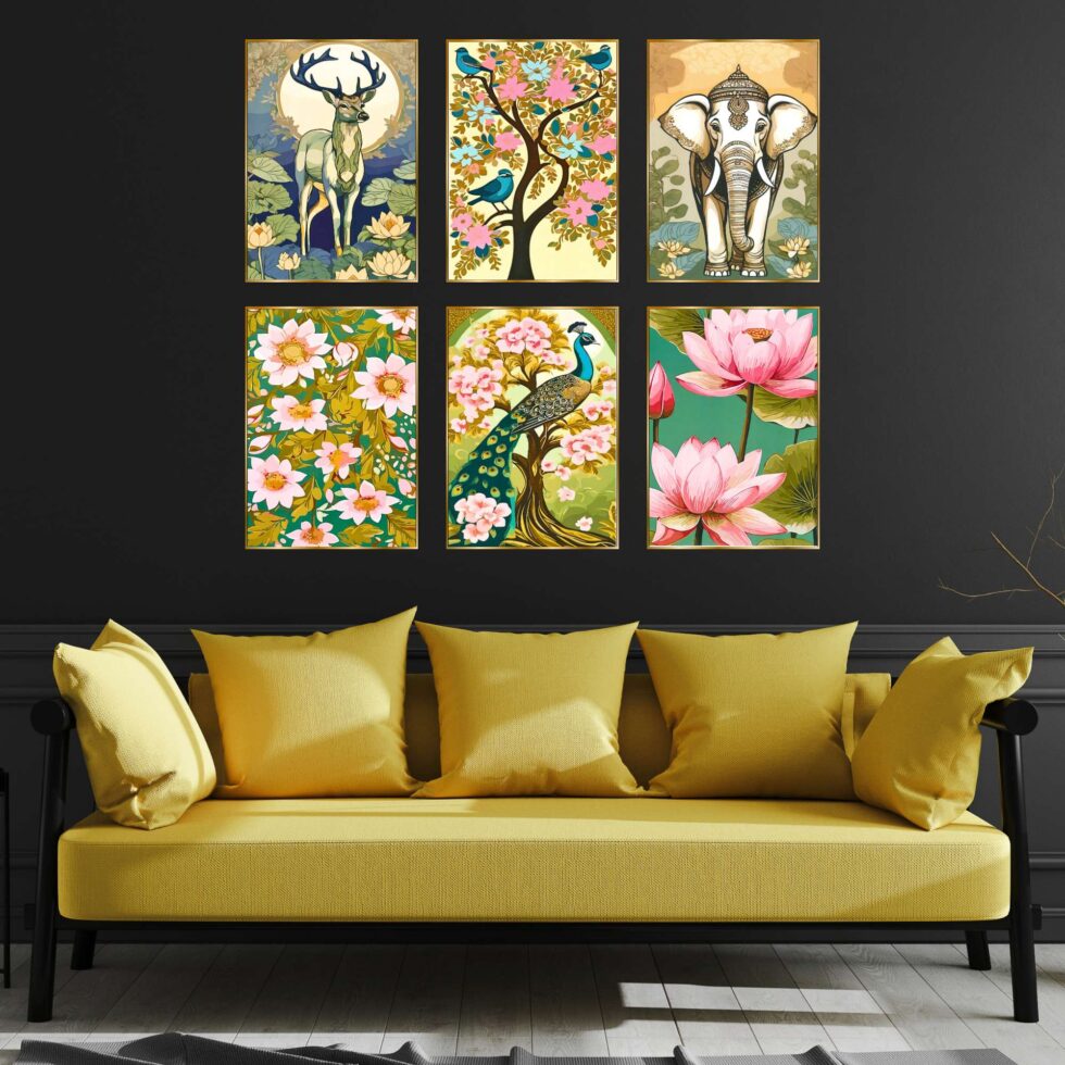 Set of Six Wall Paintings for Wall Dacoration Golden Framed Wall Paintings for Living Room & Bedroom Wall Art for Home Decoration & Office Wall Dรฉcor (13×10 inch CH-GD6-7)